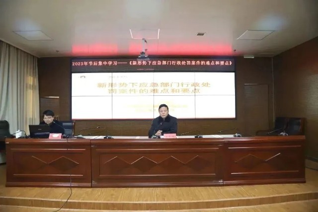 为进一步提升全局干部职工应急管理履职能力和水平,1月28日至2月1日,九江市应急管理局举办业务学习培训班。2023年1月31日上午,我所副主任胡国庆律师应邀授课。市应急局有关部门负责同志、执法支队等相关人员共计50余人参加。