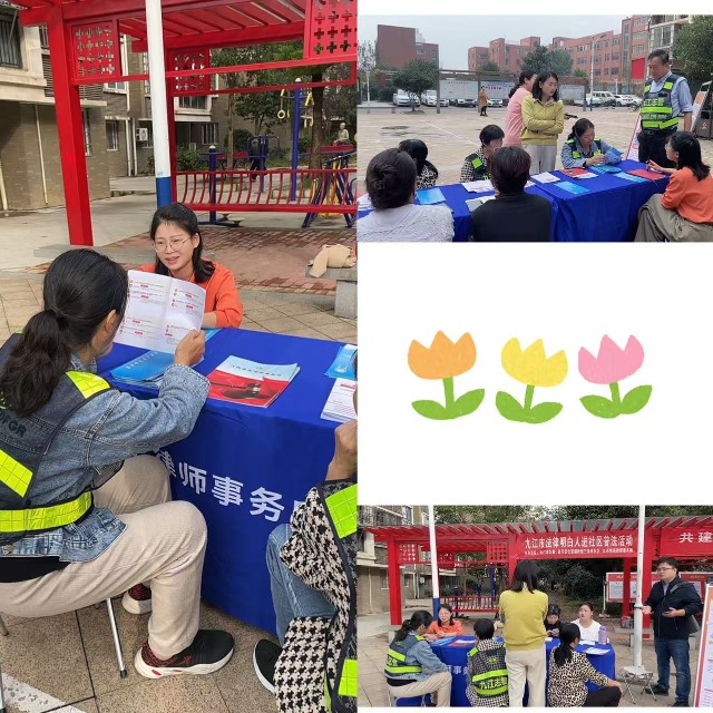2024年11月15日下午,我所与九江市妇联、三角线社区联合,在三角线社区开展“九江市法律明白人,进社区普法活动”。我所律师文彩云、郑喜春,实习律师陈亮、衣悦、汪嘉琪参与了此次活动。